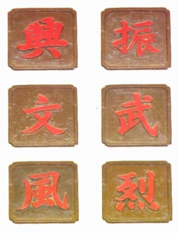 Chữ Hán trang trí liên ba hậu điện (Đỏ son trên gỗ) - tương sinh Hỏa sinh Thổ