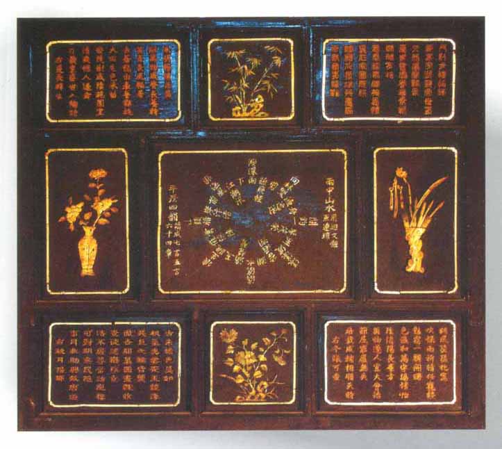 Trang trí nhất thi nhất họa (xương - xà cừ cẩn trên gỗ) - tương sinh Thổ sinh Kim
